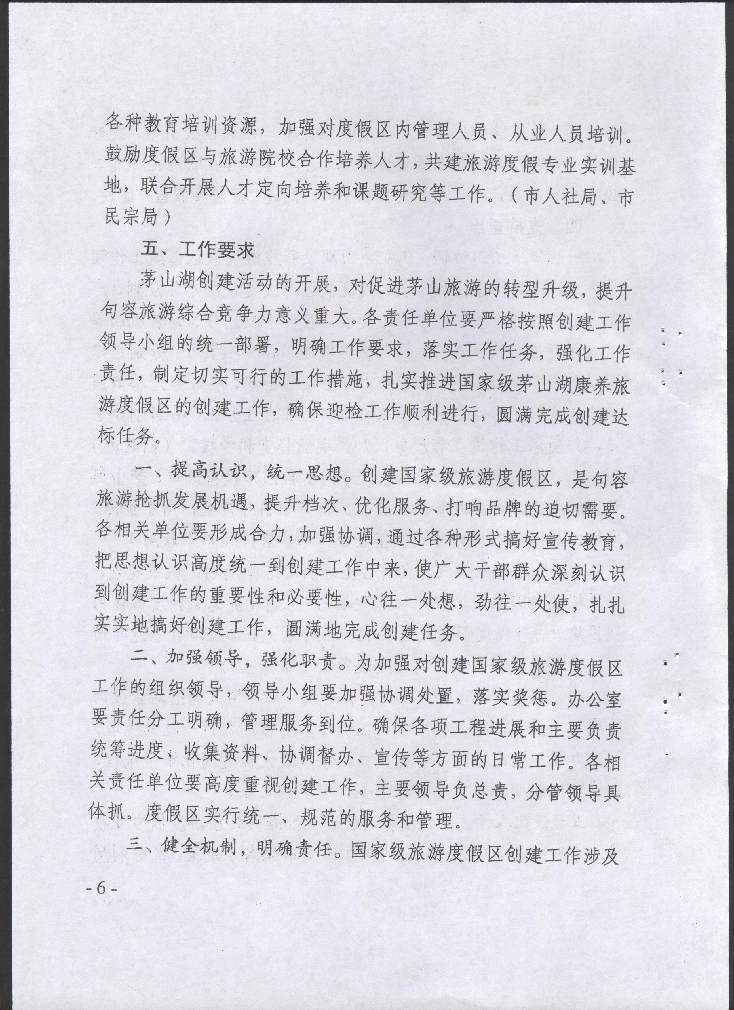 人民政府办公室关于印发关于创建国家级茅山湖康养旅游度假区实施意见的通知